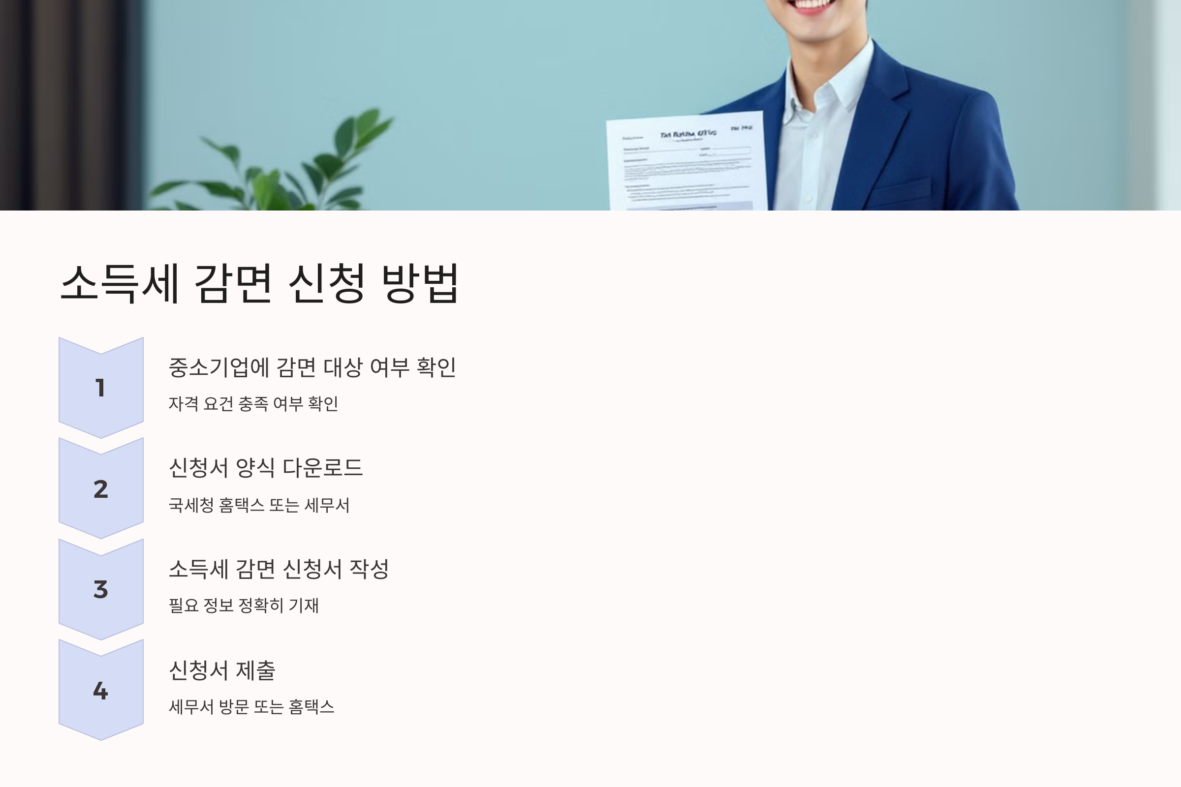 소득세 감면을 받기 위해서는 중소기업 취업자 소득세 감면 신청서를 작성하여 세무서에 제출해야 합니다.