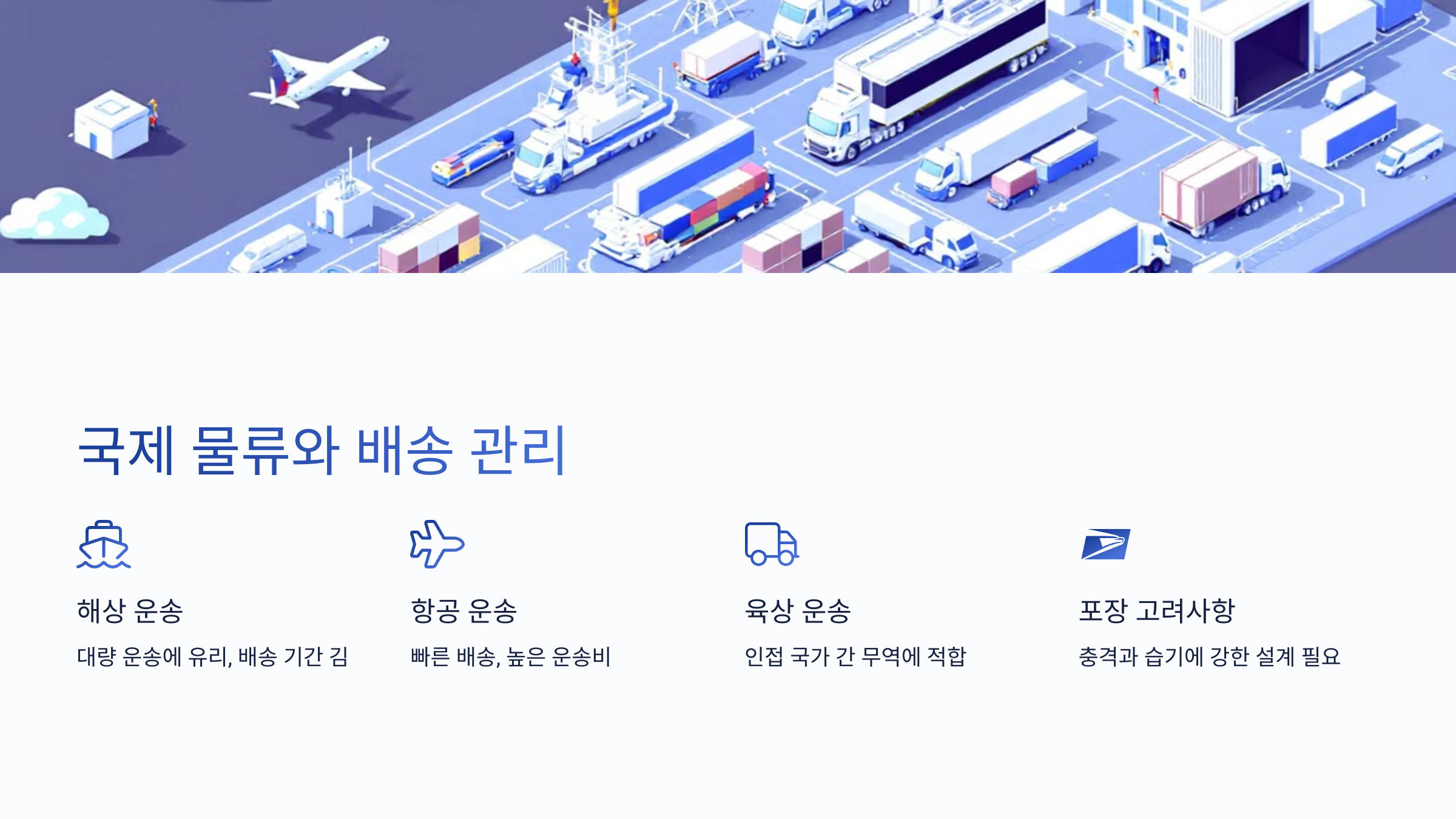 - 항공 운송: 빠르지만 운송비가 높습니다.