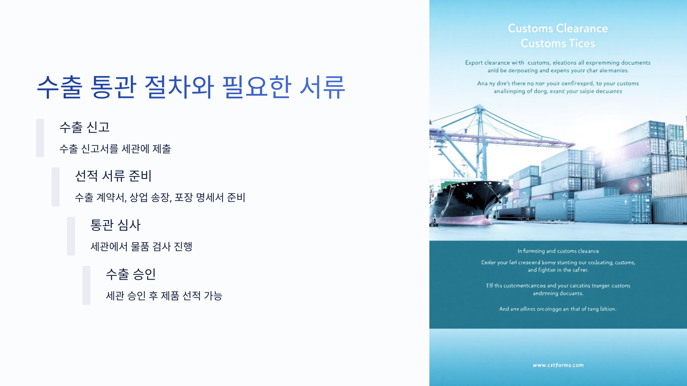 4️⃣ 수출 승인: 세관의 승인을 받으면 제품을 선적할 수 있습니다.